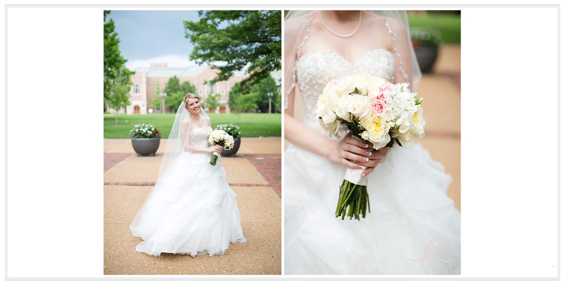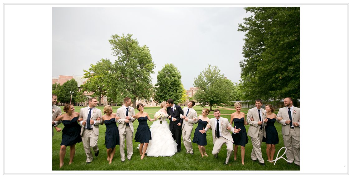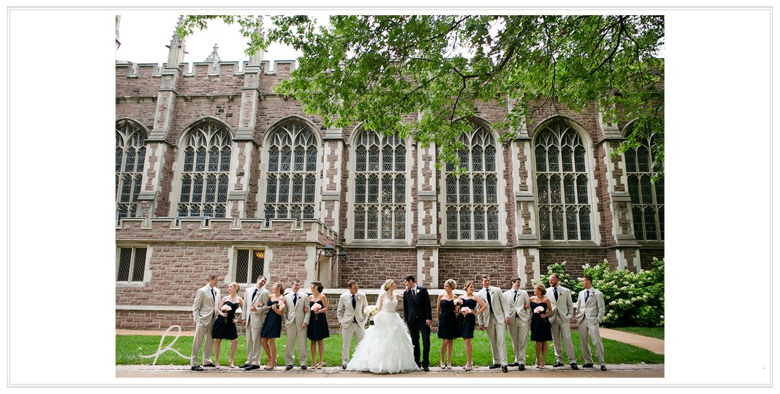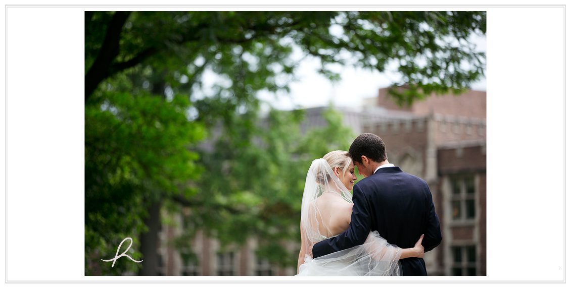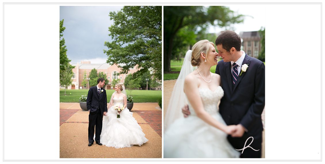 Aaaand this day was like no other. Usually I’m obsessing about the weather (clearly I do, I mention it in every post!) but this June day only predicted a 10% chance of rain. I’m pretty optimistic, so that means a 90% chance… it’s not gonna rain! (!) During the ceremony held at Graham Chapel, we heard rumblings of thunder and I looked at Ryan, eyelids stretched, thinking noooo, it’s not supposed to rain! The Wash U Campus is just so pretty and what better place to be? So I was maybe just in a wee bit of a whirlwind to try and get all the portraits wrapped-up before it poured down on us. Which thank goodness we did! In the distance, dark grey, ominous clouds + lighting lingered. So we figured if we stayed put and knocked everything out around the church, we’d be good. Sure enough, this giddy pair worked their magical love in front of the camera and made it so easy. 🙂
