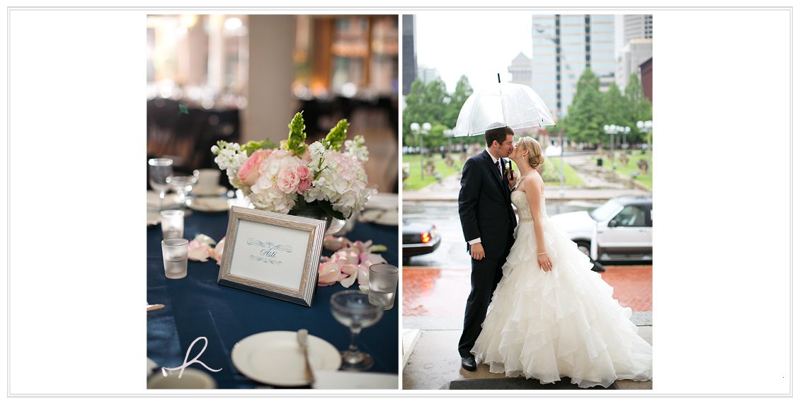 After we finished up on campus, we made our way downtown. That’s when we hit the deluge of rain. So we sat outside the Civil Courts Building, a special request from the lawyer-Groom, and took cover in the car until things died down a bit. We all agreed it might be a while, so we got out and captured a few anyway! I always love a lucky umbrella shot, and a couple willing to do anything on their wedding day. 🙂